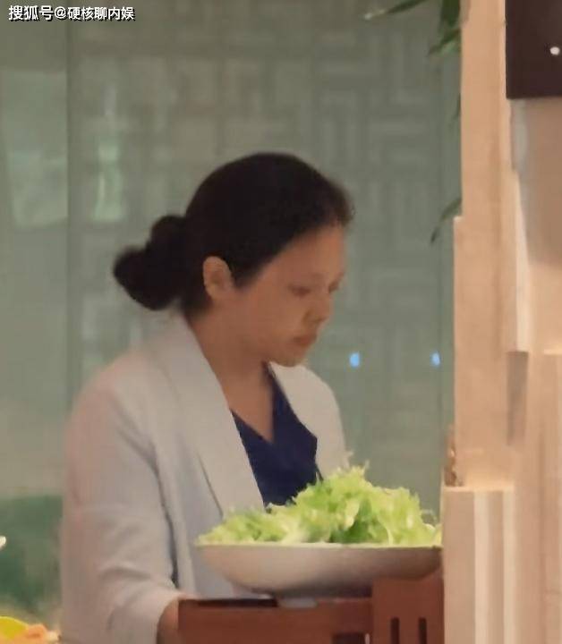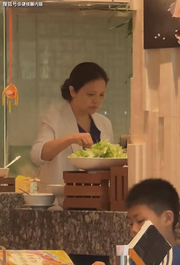 這天文清穿著白色西裝內搭藍色襯衣,打扮得依然清爽幹練,但身型明顯發福不少。文清隨意挽著頭髮,還是素顏出鏡,正在十分認真地調配醬料,完全沒注意到有人偷拍。
