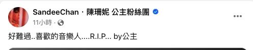 近期不少演藝圈的明星離世,讓很多人都相當惋惜,近日又傳出,曾拿下金馬獎,多次入圍金曲獎、金音獎的大咖驚傳過世的消息,讓不少好友都震驚不已,知名音樂人陳珊妮,也難過地在臉書寫下哀悼文,令人看了鼻酸。