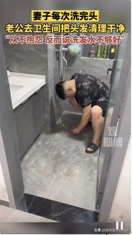 河南鄭州的一位男士,因為妻子頭髮掉得厲害,每次在妻子洗完澡後,都會主動清理地面上的長發。