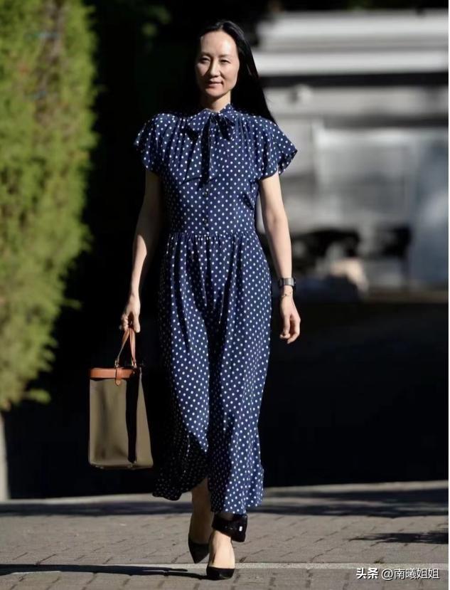 對於孟晚舟而言,更多場合是要出行於職場和通勤,所以在眾多單品選擇裡,她更加注重於基本百搭的視覺類型,這也是中年女性應該借鑒和學習的地方。