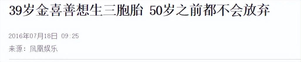 在接受採訪時,金喜善表示自己非常喜歡小孩子,曾希望生四個孩子,現在已經44歲的她,表示自己在50歲之前都不會放棄生孩子的想法,希望自己還能夠生三胞胎,這樣就能實現有四個孩子的願望了。