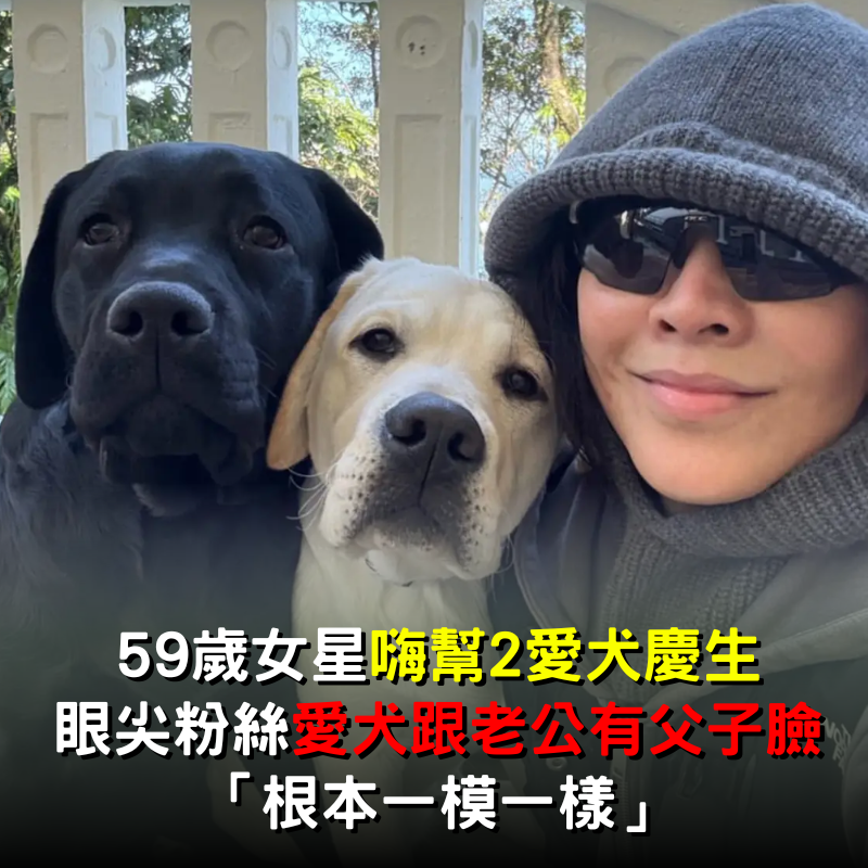 59歲女星嗨幫2愛犬慶生!狗狗竟撞臉「老公憂鬱眼神」:根本一模一樣