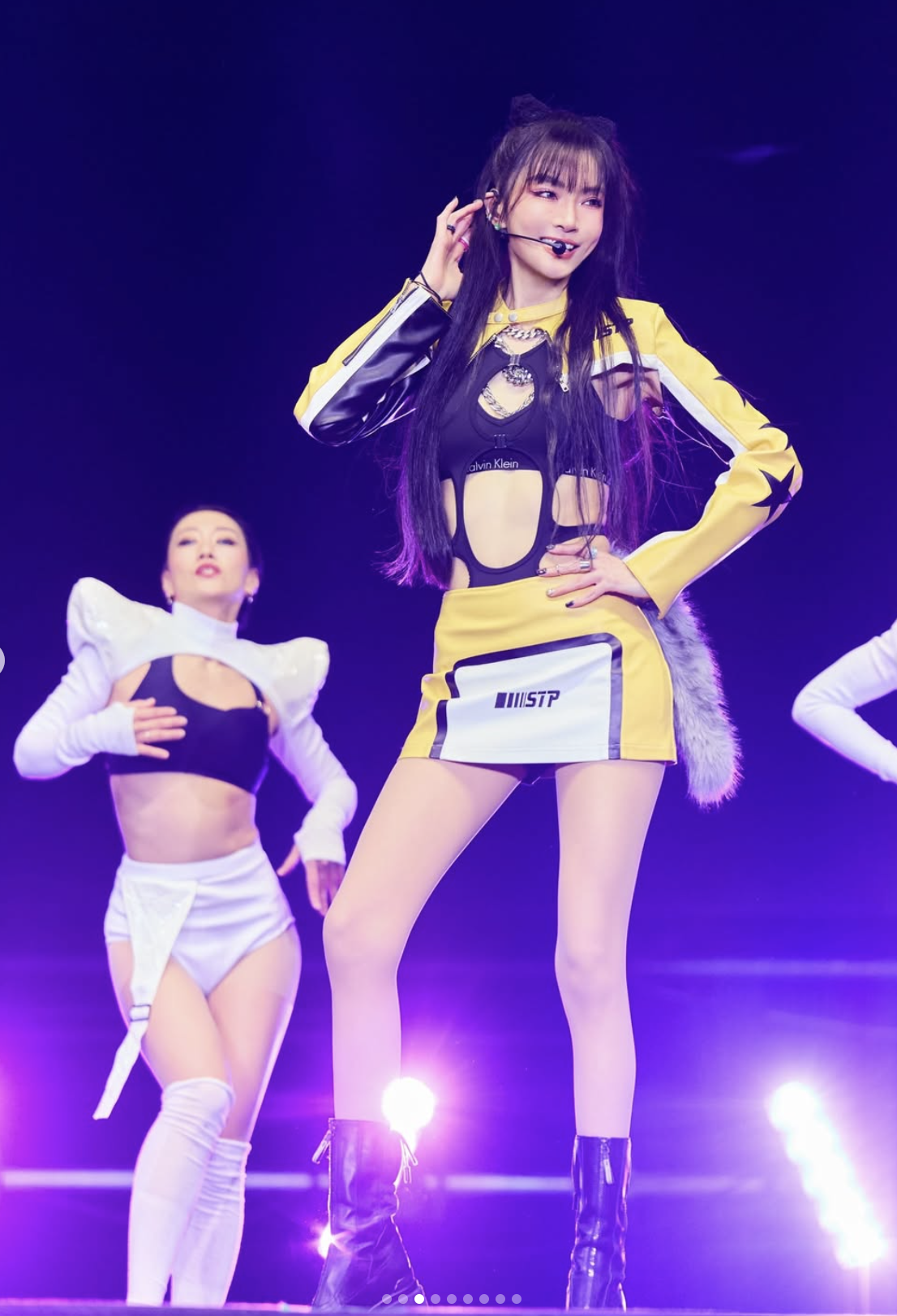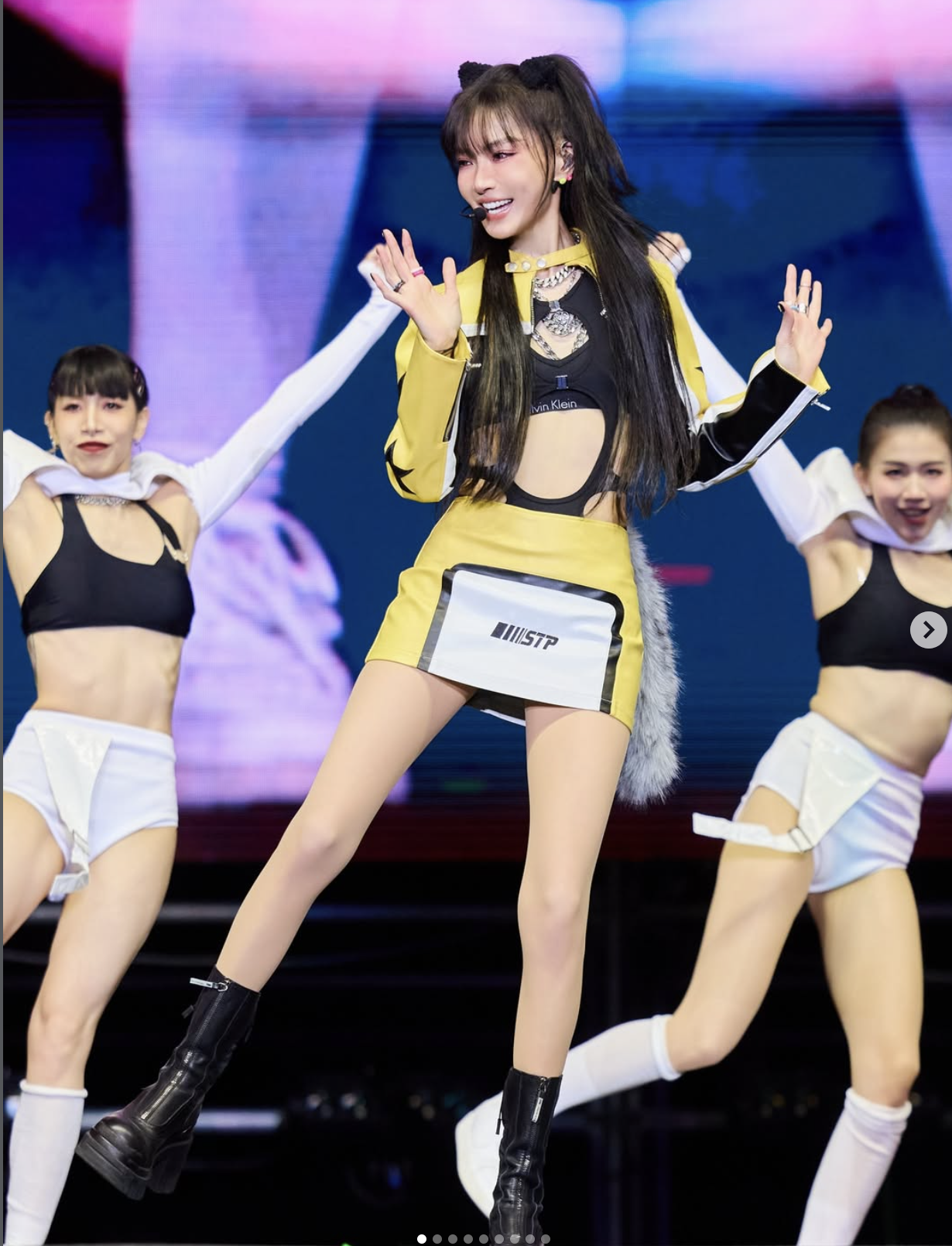 根據《ETtoday星光雲》報導,51歲的謝金燕這次是睽違十年再度站上鴻海尾牙舞台擔任壓軸演出。她一口氣連唱七首經典電音組曲,身穿開了九個洞的辣裝狂秀筆直美腿和腹肌,把整個大巨蛋嗨翻天。