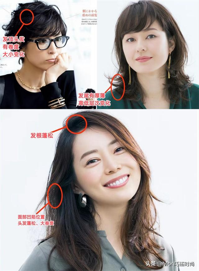 而大齡女性捲髮的變化感主要體現在弧度大小和發尾的厚薄長短變化。短髮選擇在頭頂處有弧度大小交錯,中長髮在發尾處利用厚薄和長短打造出層次,這樣才能避免死板哦~