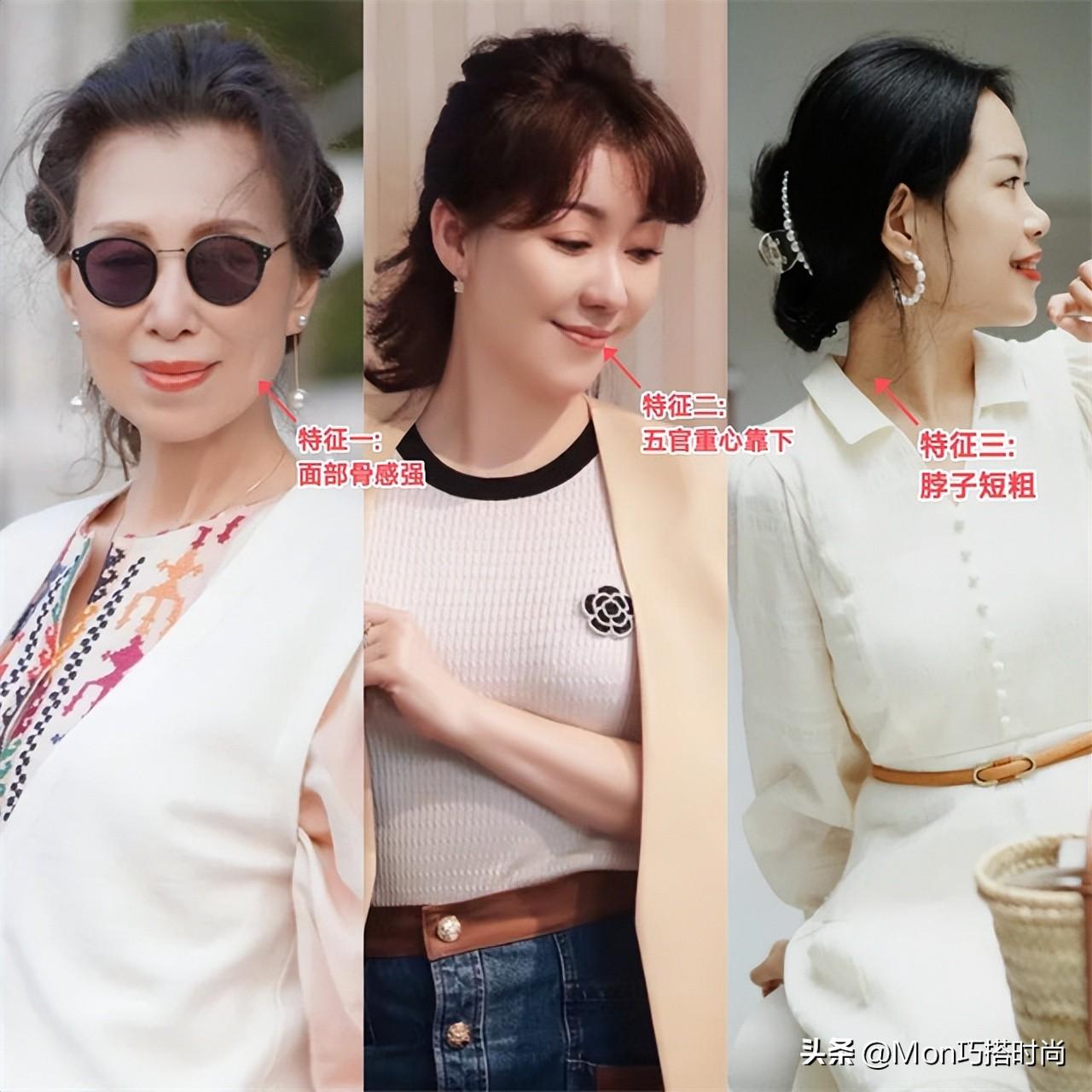 面部骨骼感強或有明顯顴骨突出、太陽穴凹陷;鼻頭大、嘴唇厚等重心靠下的五官;脖子短粗,有這三種特徵,將頭髮挽起來,露出耳朵或脖頸更年輕哦~