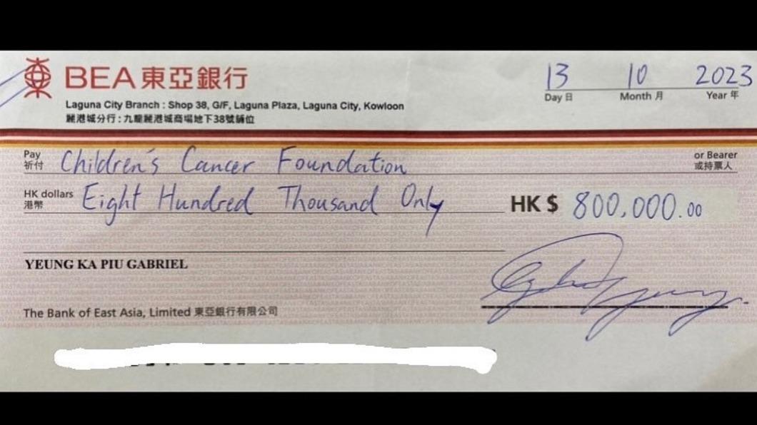 楊嘉驃宣布已捐贈港幣80萬(約台幣331萬)予香港兒童癌病基金,「我想將帶不走的,留給勇敢抗癌的小朋友」,他坦言,好早前已經有捐款的決定,因為自己深深感受過患癌的痛苦,「所以明白患癌的小朋友比我更辛苦,而且比我更勇敢。我相信抗癌小朋友都同其他小朋友一樣,都值得擁有一個快樂童年,所以我決定支持。」