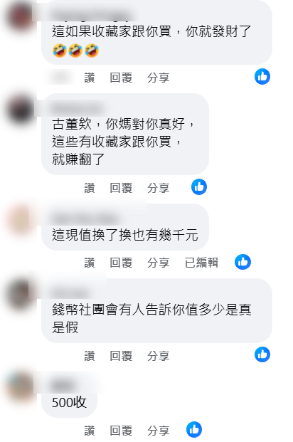 貼文曝光後,立刻引來網友們熱烈討論,紛紛表示「你要發財了」、「古董欸,你媽對你真好!這些有收藏家跟你買就賺翻了」、「你拿來我幫你花」 、「這些都是錢母,真的不要花」、「這個我收到會開心到發瘋欸,你傻傻的」 ;也有專業網友指出,這些舊鈔票極具收藏價值,建議原PO好好保存,因為些紙幣放越久可能越值錢。