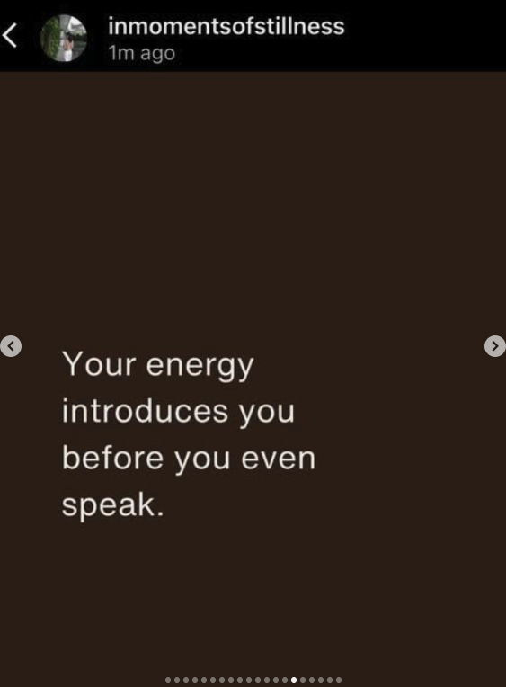 廖思惟在神隱七天之後,她於今日(3/31)首度透過IG發文,用一系列的動態分享透露自己的狀態與想法。廖思惟在限時動態中轉貼了一段英文句子:「Your energy introduces you before you even speak.」意思是「當你還沒開口,別人就已經從你的氣場認識你了。」