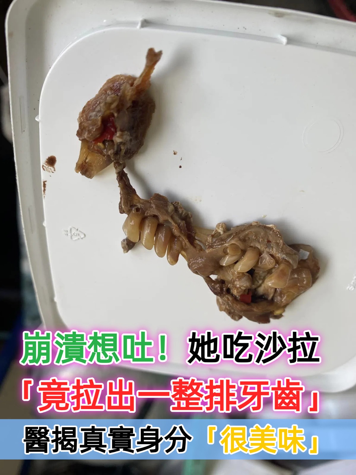 她吃沙拉「竟拉出一整排牙齒」崩潰想吐!醫揭真實身分:「很美味」