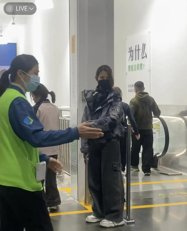 可能是怕被認出來,她還戴了黑色的大口罩,說實話這身打扮和普通老百姓沒什麼區別。