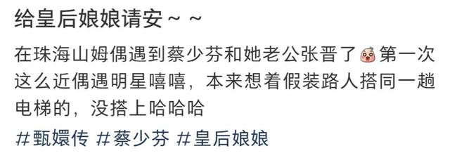 這兩天在珠海的網友開啟了偶遇模式,有不少網友都曬出了偶遇「皇后娘娘」蔡少芬的照片。