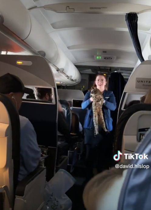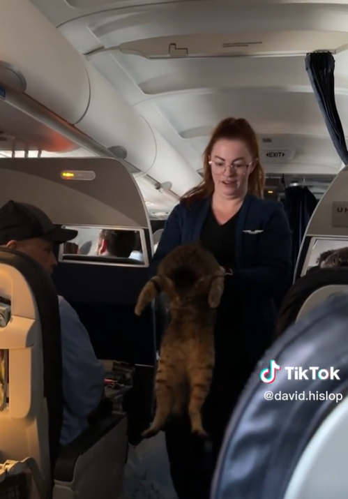 從乘客大衛(David Hislop)錄下的影片可以看到,一隻虎斑貓在飛機走道上閒晃,空服員在廣播中說到「如果你遺失了一隻貓,需要你來告訴我們」隨後也抱起貓咪一一詢問。然而被抓住的貓咪相當不情願,還在半空中唉唉叫掙扎,想逃離空服員的手中,最後飼主終於出現將貓咪抱回座位。