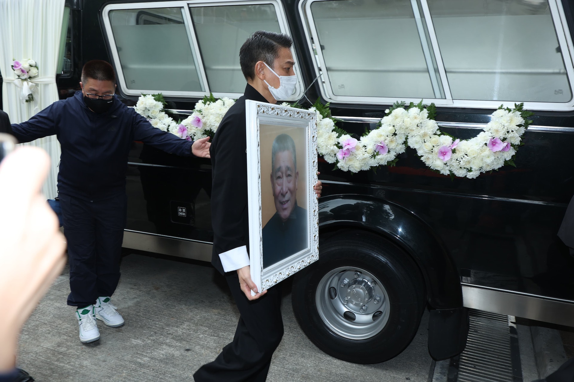 昨(6)日上午劉德華與家人再次抵達殯儀館,大殮儀式結束後,他親自捧著父親遺照,在胞弟的陪同前往火葬場,完成告別儀式後,劉德華神色哀傷踏過火盆,先護送妻女上車,並向現場記者雙手合十致意,隨後上車與家人離開。