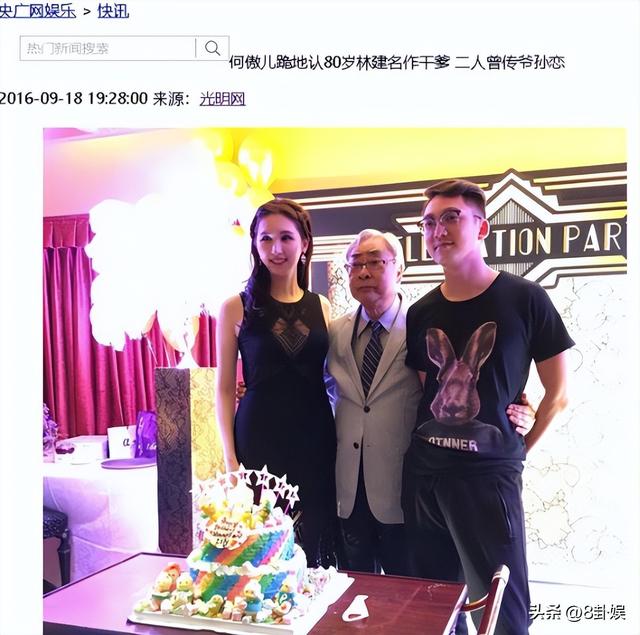 2016年,林建名公開宣布了自己與何傲兒的乾爹、乾女兒關係,這也是對二人輿論的一種澄清,畢竟二人相差足足51歲,對於何傲兒來說,自己無疑是事業的「犧牲品」,但林建名這個長輩卻給了她很多的幫助,教會她很多道理。直到林建名去世,她也發表了自己的哀悼,也為自己的青春畫上了句號。