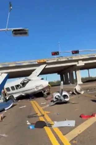 美國德州驚傳飛機墜毀意外!一架飛機在高速公路緊急迫降,機身當場斷裂成兩截,造成包含飛行員在內共4人受傷,事故發生時正值車流量高峰,更波及到3輛行駛中的車輛。