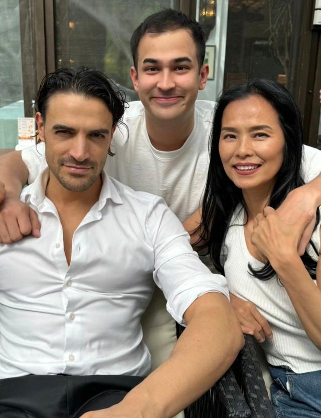 對此,有網友忍不住說:「乍看還以為是一家三口」,也有網友好奇:「什麼關係?」,更有網友猜測:「那個是大兒子嗎?以前好帥的。」