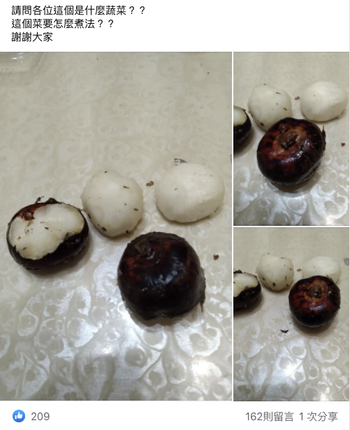 根據TVBS新聞網報導,最近有網友在臉書社團「廚藝公社」Po文表示,頭一次看到外表這麼黝黑但去皮後卻是雪白果肉的食材,由於思來想去不知道該如何料理入菜,因此便將整個照片傳至網路,詢問廣大網友的意見,「請問各位這個是什麼蔬菜?這個菜要怎麼煮?」