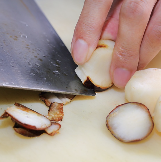 由於該食材的外表相當奇特吸睛,因此貼文曝光後也立刻吸引許多眼尖的饕客出面指認,「這是荸薺,去皮拍碎擠乾水份 ,放入絞肉中,增加脆甜的口感」、「嫩的話可以削皮直接吃,當水果吃」、「加到菜裡很甜很脆,適合沒味道的菜餚」,甚至還有網友補充,去皮後的荸薺若沒要馬上料理,建議要泡水冰冰箱保存。