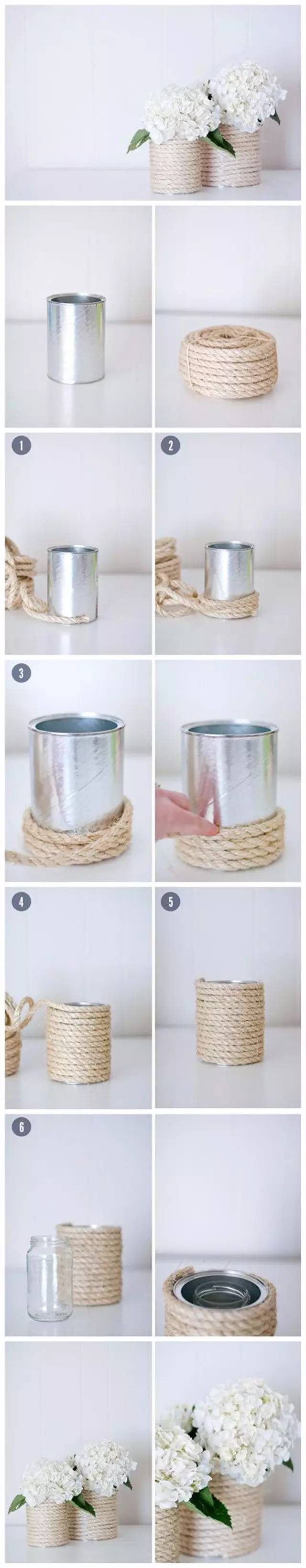 走簡約風只用纏上麻繩就很好看了!用來插花擺在家裡美哭!不過要注意!下面這款要在鐵罐里放置一個玻璃瓶,再把花插進玻璃瓶內喔。