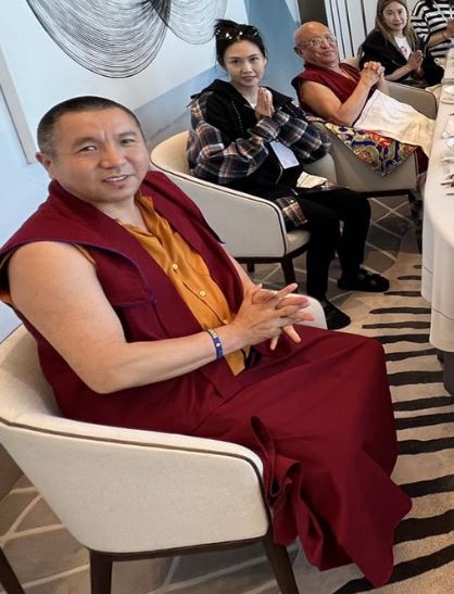 據《三立新聞》報導,邱淑貞篤信佛教,近日藏傳佛教名僧人「秋吉尼瑪仁波切」(Choyi Nyima Rinpoche)赴港弘法,她便和其他信眾一起、與僧人共進午餐,只見她身穿深色格紋外套,頭髮往後紮起,墨鏡隨意放在頭上,畫著淡妝、皮膚依舊白皙光滑,雙手虔誠合十,完全看不出已經55歲!