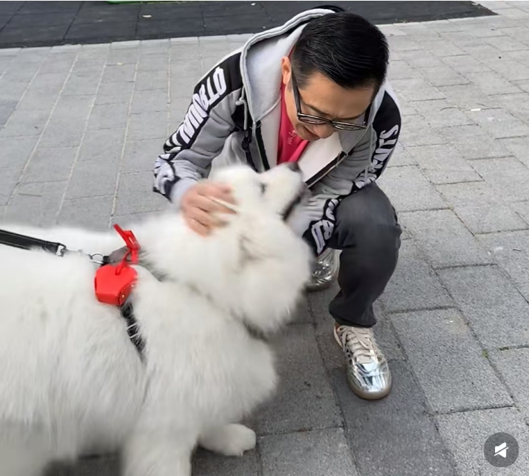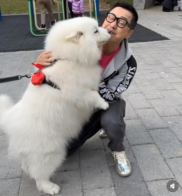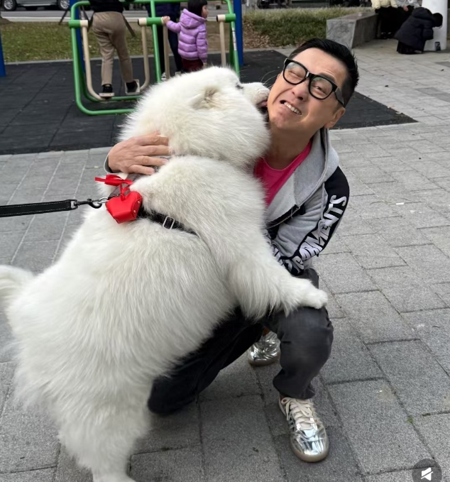 哈利拍下了老爸庾澄慶和愛犬互動的溫馨畫面,照片中,庾澄慶蹲在地上和狗狗玩耍,一人一狗的畫面簡直不要太幸福。