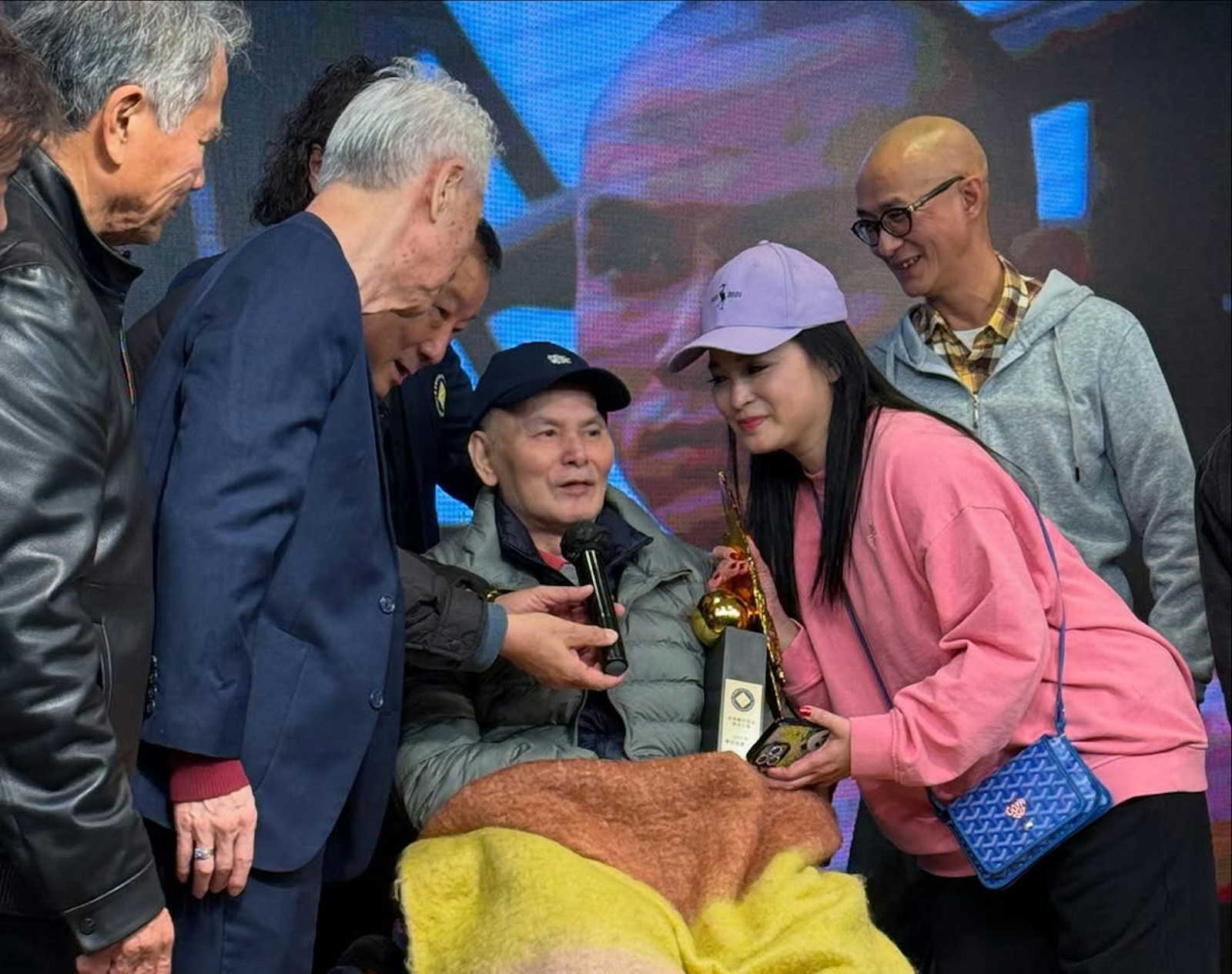 近日,他身穿保暖羽絨衣、頭戴帽子,坐在輪椅上參加新春團拜晚宴,腿上還貼心地蓋著一條毯子,雖然與昔日英姿颯爽的模樣相去甚遠,臉頰受到明顯凹陷,但精神狀態看起來不錯。這場晚宴可說是眾星雲集,包括公會會長錢小豪、副會長張雷、知名演員古天樂等人,都共襄盛舉。