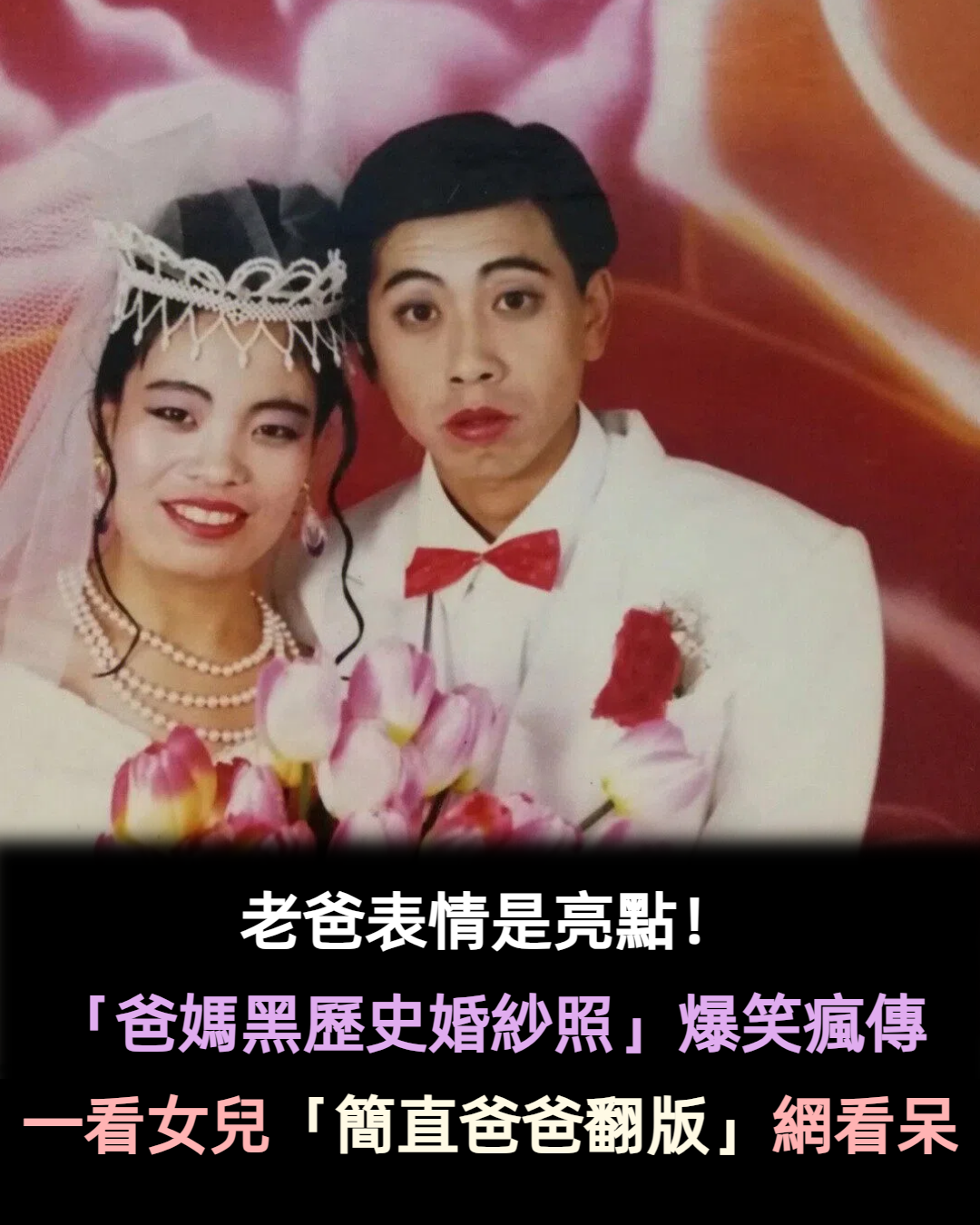背板竟是勿忘我!超爆笑「爸媽黑歷史婚紗照」老爸表情成亮點 一看女兒「簡直爸爸翻版」基因神遺傳