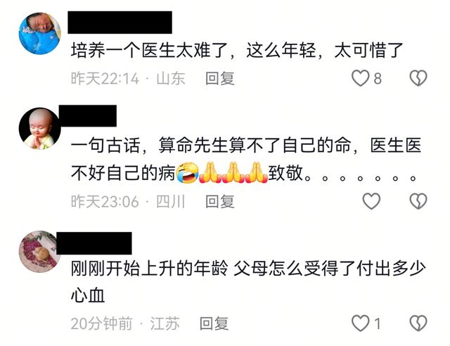 有網友說培養一名醫生不容易,陳喆醫生現在正處於醫學生涯的黃金期,猝然離世,實在令人傷心。