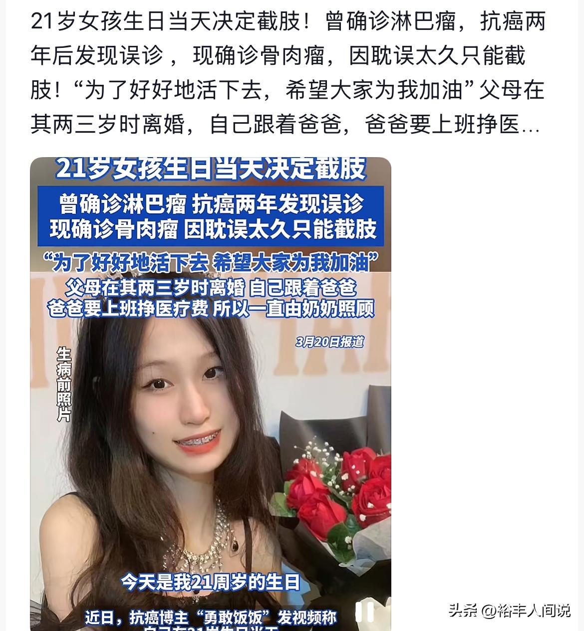 今年3月份,梁希怡的癌細胞已經擴散到了骨頭,為了生活下去,她選擇截肢,而且恰好延到了生日當天,對於她來說,這是一份特殊的「禮物」,原以為老天放過她,哪曾想才半年,她就化為塵埃。