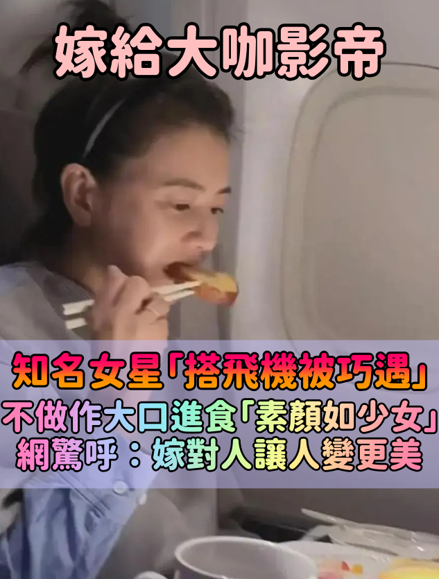 嫁給大咖影帝!知名女星「搭飛機被巧遇」 不做作大口進食「素顏如少女」網驚呼:嫁對人讓人變更美