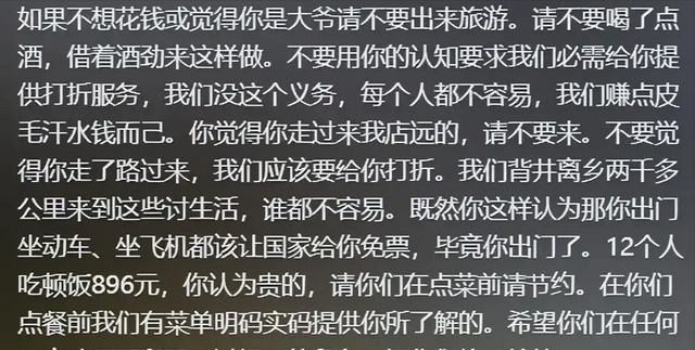 女顧客隨後解釋道,他們一行人步行到飯店,走的很遠,必須要打折。