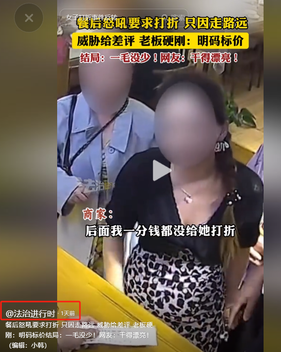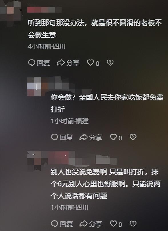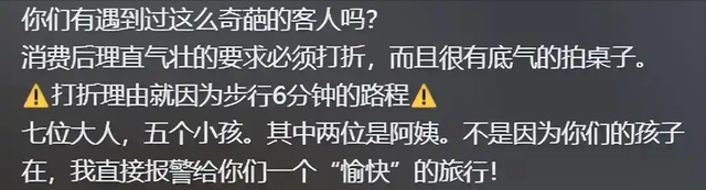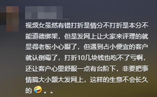 吃飯打折本身無可厚非,可女顧客的理由和態度實在既奇葩又囂張。