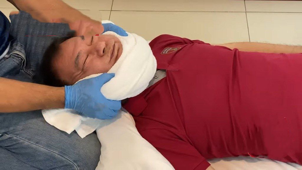 阿燦回憶去年11月底,他發現左下顎僵硬且麻木,疑似有中風的先兆。後來服藥後有所好轉,但幾天後仍感不適。有一天他吃了糯米飯和燒鵝後,吃到一半就感到不對勁,整個人非常疲倦且不想說話,期間又突然急迫地需要大便,頭也不舒服,一摸發現有腫脹的東西,口腔也腫脹。回家後他立即上廁所「排毒」,緩解了腫脹的情況。
