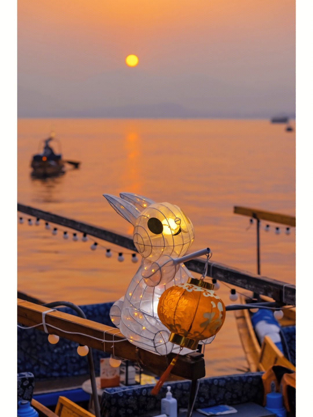 福氣兔兔來了❤️船頭坐滿「療癒兔兔燈籠」萌度爆表 夕陽西下「落日餘暉染上湖面」唯美氛圍好浪漫