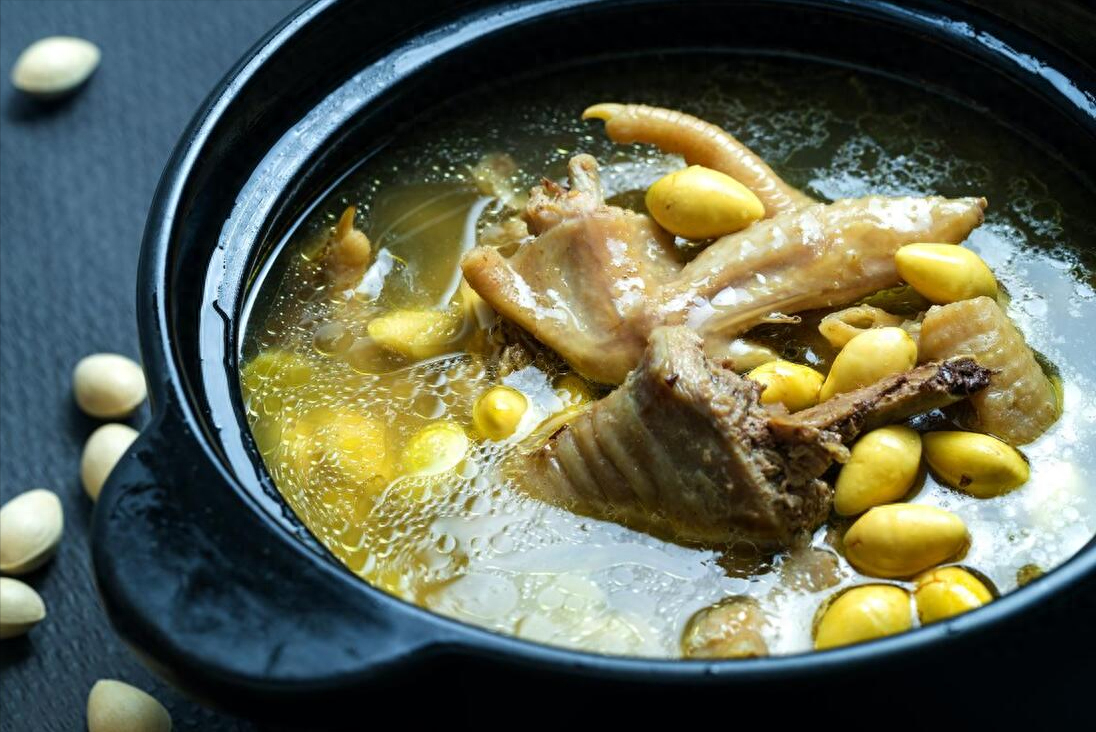 白果燉雞湯口感鮮美,湯汁濃郁,滋補養生。雞肉提供豐富的蛋白質和營養物質,白果則增添了清甜的口感和潤肺化痰的功效,枸杞則增強了湯的滋補效果。這道白果燉雞湯不僅可以滋養肺部,還有助於提高免疫力,讓您在夏季保持健康。