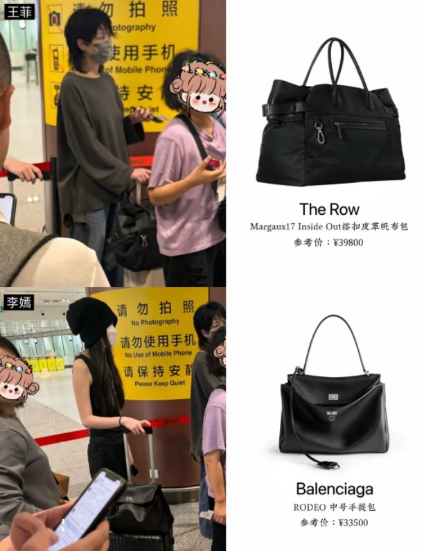 且兩人所使用的奢侈品包包價格都不菲,王菲的帆布包39800元(約新台幣16.7萬),李嫣的手提皮包33500元(約新台幣14萬)。
