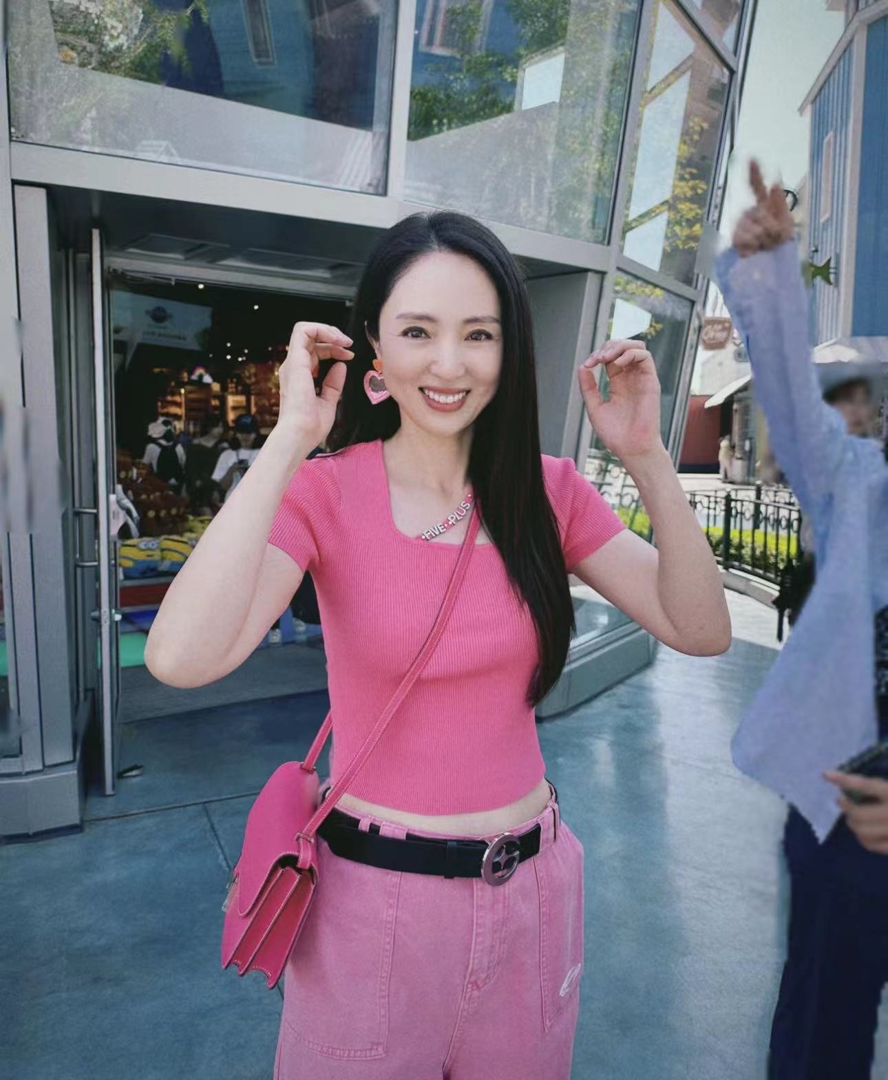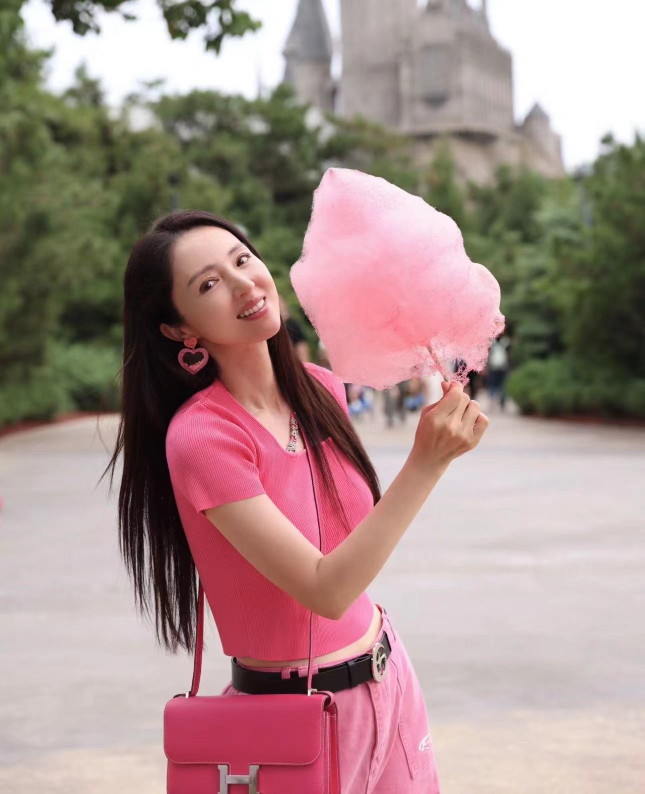 反觀董璇全身粉紅打扮,狀態好得像少女一般,不僅皮膚飽滿光滑,身材也特別苗條,腰肢纖細,一雙大長腿十分吸睛。