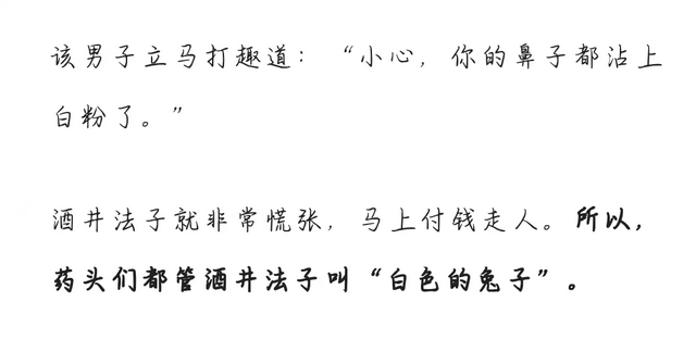 在丈夫的「勸告」之下,酒井法子對毒品直接樣樣都沾,所有的「藥品」都要親自聞一聞,賣「藥粉」的男子還曾打趣她說: