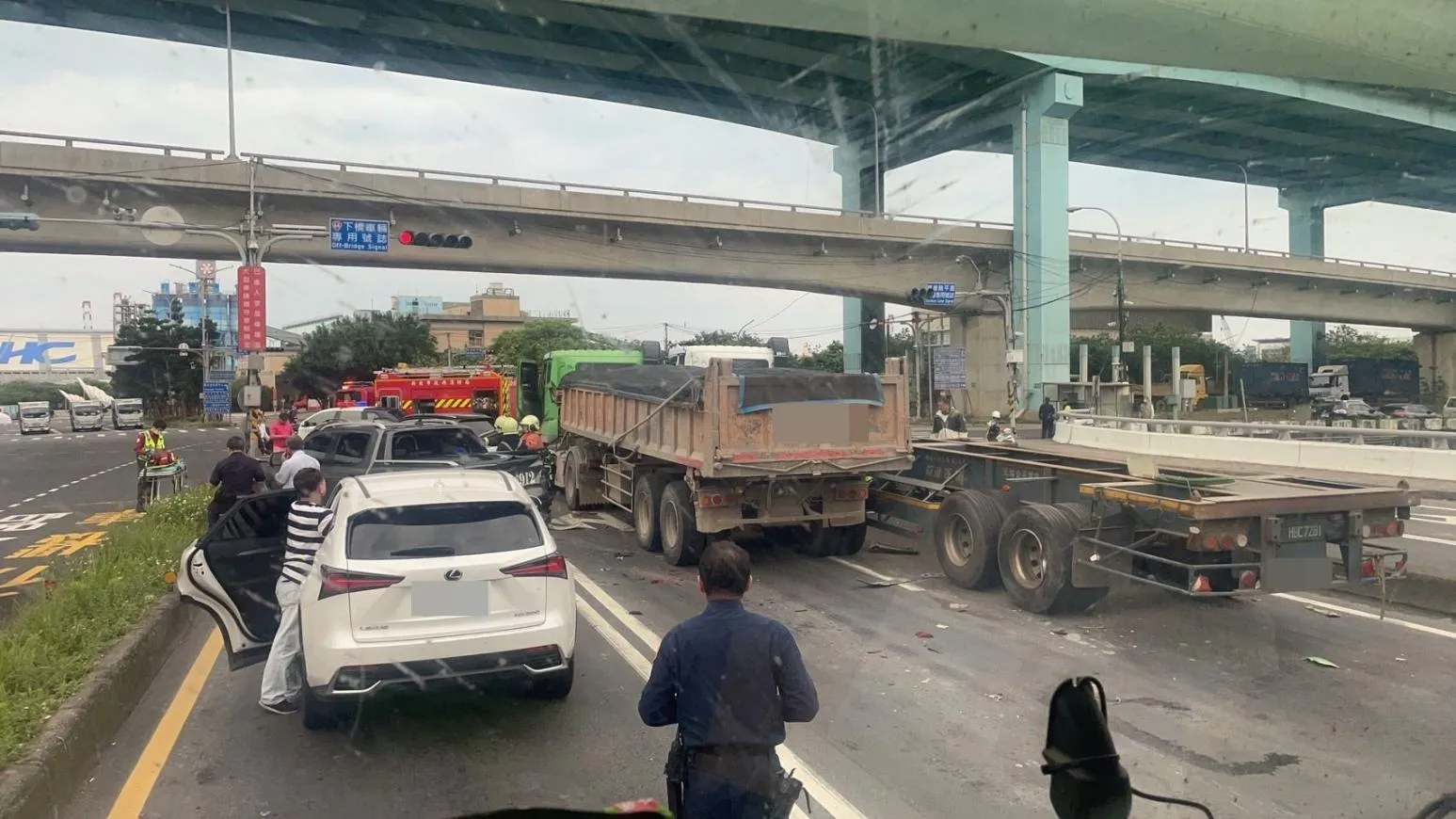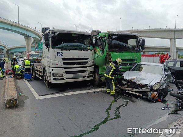據《ETtoday新聞雲》報導,新北市八里台61線下台北港匝道今早發生重大行車事故,一輛聯結車因不明原因與砂石車發生車禍,追撞4台小客車和1台重機,導致7車連環撞,其中導致重機後座年約50多歲女子被撞後壓在車底,雙腳斷肢及粉碎性骨折,當場OHCA,目前已送淡水馬偕搶救。