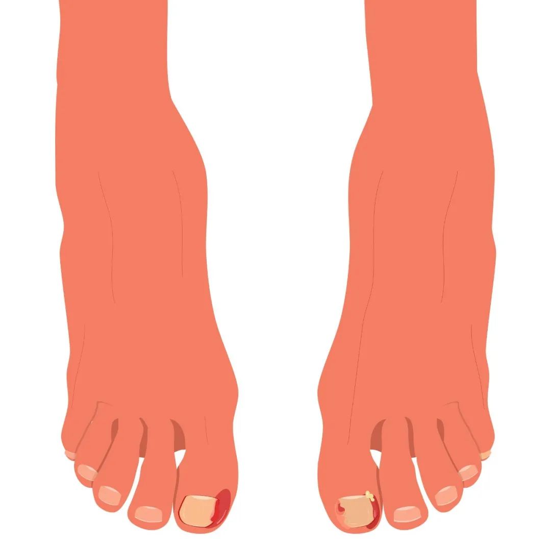 相反,如果你的指頭被包裹著向上,那與鞋面的摩擦又有可能造成指甲分層、甲下淤血、拇指外翻、變色。