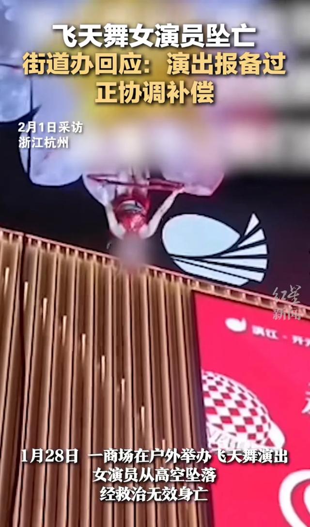 目前,就女演員高空掉落一事官方作出回應,女演員經過搶救最終醫治無效去世,據傳年齡僅28歲,遺體已送往殯儀館,此事已立案,對涉事單位和人員將進行調查,街道辦就此事也作出回應,正在協調補償。