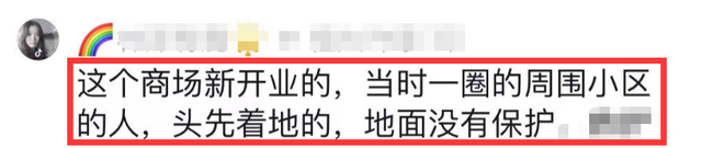 截止到目前,這位女演員的家人都沒有發聲,而在現場的目擊者透露,這個商場是新開業的,當時現場有很多周圍小區的人,都看到她是頭先著地的,地面沒有保護。