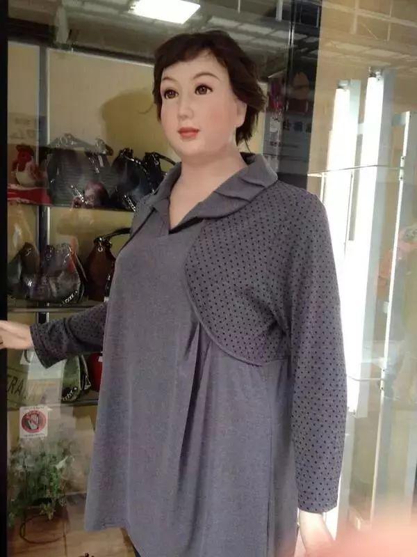 十分逼真的「大嬸人型模特」做出了中年婦女的梨形身材,媽媽們逛街時可以參考這一款麻豆!