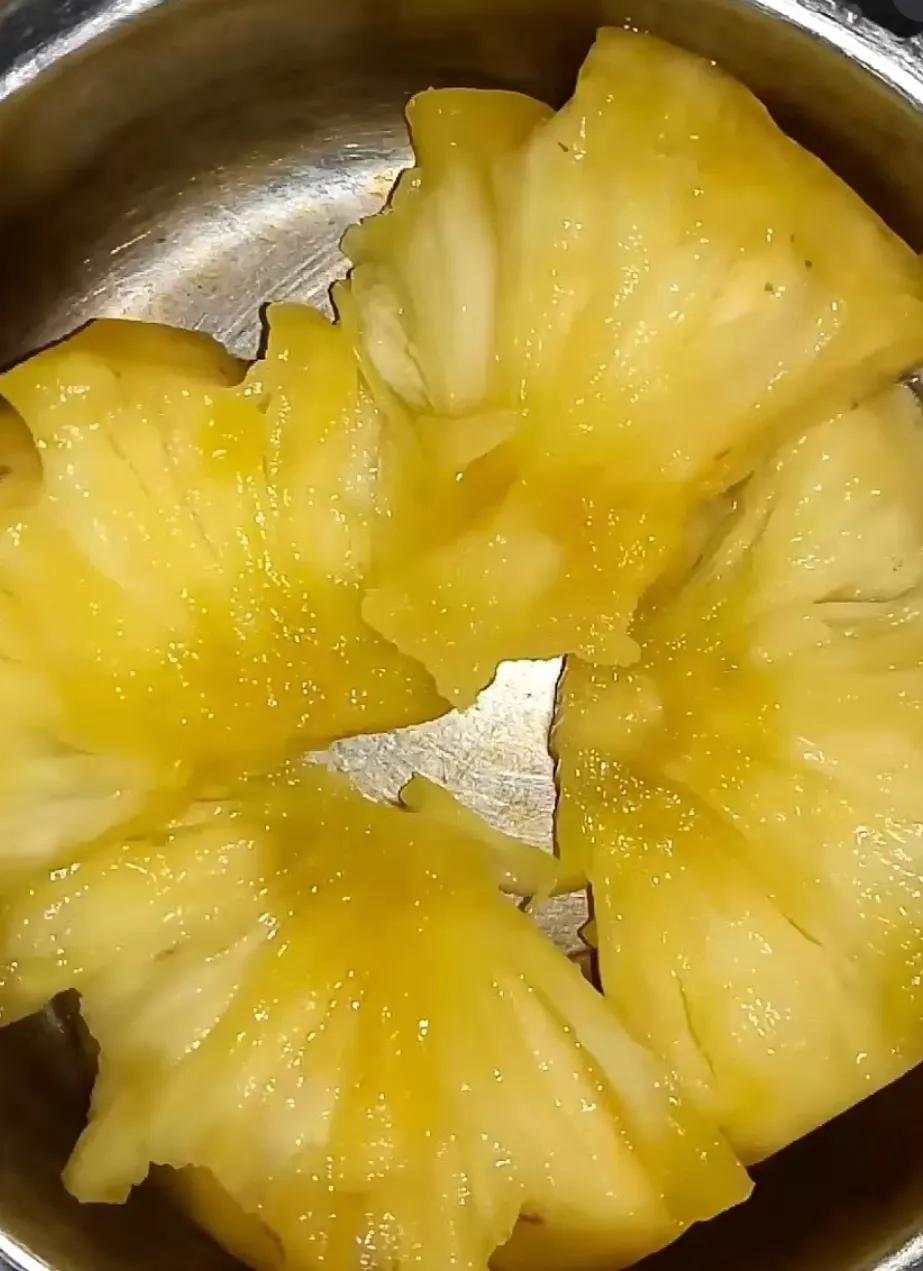 24、蒸鳳梨(助消化,輕鬆愉快):把鳳梨去皮後切成塊狀,放入蒸鍋中蒸至溫熱。這種吃法有助於消化,讓人感覺輕鬆愉快。鳳梨中含有豐富的鳳梨蛋白酶等成分,對消化有一定的促進作用,蒸鳳梨可以使鳳梨蛋白酶的活性降低,減少對口腔和腸胃的刺激。