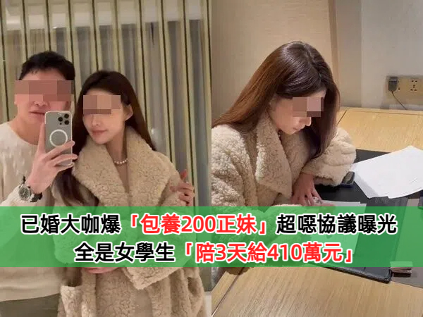 已婚大咖爆「包養200正妹」簽超噁協議 全是女學生「陪3天給410萬元」