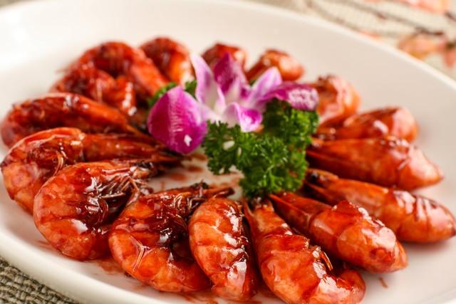 就桌上擺著的油燜大蝦這道菜,大家開始點評,色,香,味都有人誇獎,大家又開始討論,清蒸也不錯,水煮也行。