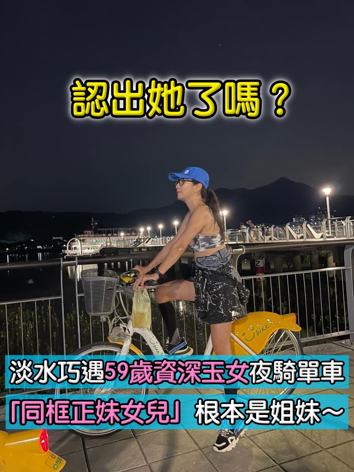 淡水驚見「59歲資深玉女」夜騎單車 「和正妹女兒同框」辣曬蠻腰驚艷萬人
