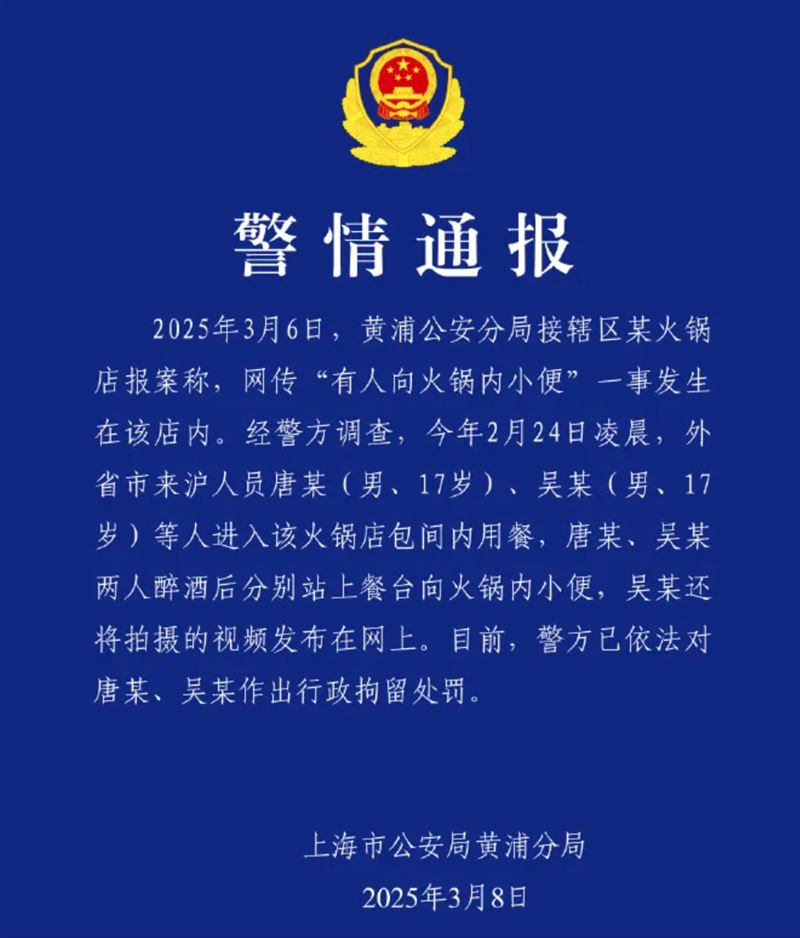 綜合陸媒報導,當時當事人與另一名同姓友人一同在餐廳用餐,才吃到一半,他竟突然爬到桌上,解開褲子公開小便,並將尿液全噴入湯鍋。而朋友則是拿出手機錄影,過程中不斷大笑,引來店員、其他饕客側目。