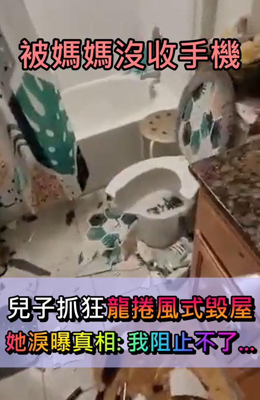 被媽媽沒收手機!兒子抓狂「龍捲風式毀屋」家具全毀了 連廁所都遭殃「媽媽淚曝真相」:我心都碎了