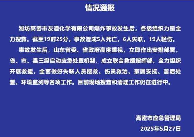 這間化工廠為豪邁集團股份有限公司的子公司,坐落於濰坊市高密仁和化工園區,佔地超過47公頃,專門生產高效低毒農藥及其專用中間體,涉及多種危險化學反應製程。目前當地應急管理部門正全力進行救援,並持續調查事故原因。
